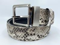 Python leather belt made from genuine python skin back part of python hide with unique and natural pattern of python hide. Belt equipped simple pin buckle with clamp. This model of belts can be used both women and men. As a basement for this belt used soft calfskin.