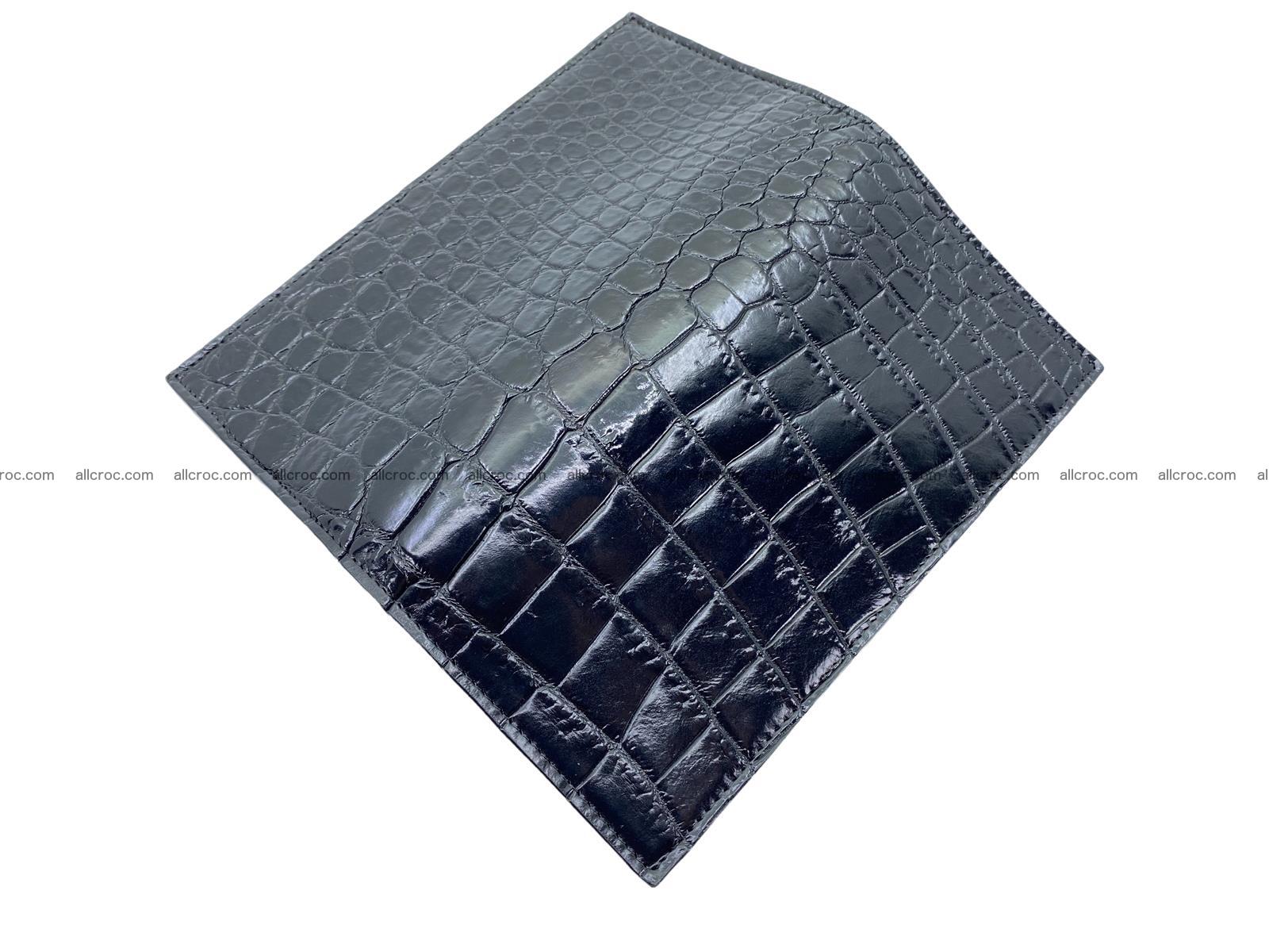 Handcrafted crocodile skin long bifold. Classical crocodile skin wallet. Both women and men can use this wallet. For manufacturing of this wallet, used genuine Siamese crocodile skin belly part. Crocodile skin soft and elastic. Wallet created from one whole crocodile skin piece, this makes this wallet more valuable. Wallet consist from one banknotes pocket. Twelve card slots one of them with transparent window for ID card. Two side pockets located under card slot row. One flat zip pocket located in banknote pocket, one flat pocket located behind zip pocket. Soft calfskin and textile used as a lining material.