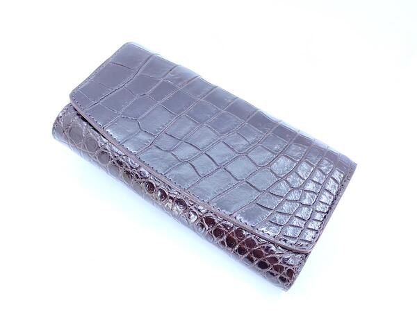 Classical model of crocodile skin wallet. For manufacturing of this, wallet used belly part of genuine Siamese Crocodile skin. Crocodile skin soft and supple. Wallets of this model unisex and can be used both, women and men. Wallet consist from two banknotes compartments, six card slots, four side pockets with access from middle part of wallet. Soft calfskin and textile used as a lining material.