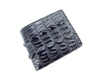 Classical crocodile skin wallet, standard short bifold wallet. For manufacturing of this wallet used genuine Siamese crocodile skin, skin high quality, soft and elastic. This wallet made from tail part of crocodile skin of young crocodile. Wallet consist from – two banknotes compartments, six card slots and four side pockets with assess from middle part of wallet. Soft calfskin and textile used for lining material.