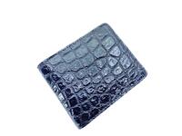 Classical crocodile skin wallet, standard short bifold wallet. For manufacturing of this wallet used genuine Siamese crocodile skin, skin high quality, soft and elastic. This wallet made from belly part of crocodile skin, wallet manufactured from one whole piece of crocodile skin, this making wallet more valuable. Wallet consist from – two banknotes compartments, six card slots and four side pockets with assess from middle part of wallet. Soft calfskin and textile used for lining material.