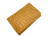Classical crocodile skin wallet trifold for women, wallet equipped compartment for coins. For manufacturing of this wallet were used high quality genuine crocodile leather of Siamese crocodile, belly part of crocodile skin. Wallets of this model has a good functionality and will be loved by those of you who prefer wallets of average size that can be carried in even in small handbag. Wallet consist from one banknotes compartment, eight card slots, one ID slot with transparent window, one pocket for coins and fife extra side pockets. Wallet closing on the magnet button. Calfskin and textile used as a lining material.