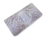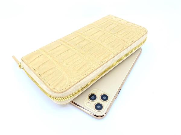 Long wallet with zip made from genuine crocodile leather, high-quality crocodile leather. For manufacturing of this wallet used one of most expensive and beautiful nape part becomes to hornback part of Siamese crocodile leather. As a main decoration of wallet on one surface of wallet located beautiful and symmetrical occiput part of crocodile skin, nape symmetrical and has a 6 osteoderms. Important information, from one crocodile hide can produce only one wallet with this texture. Wallet made from one whole piece of crocodile skin that increase value of this wallet. The leather is soft, elastic and pleasant to the touch. Both women and men can use wallets of this model. Soft calfskin and textile used as a lining material.