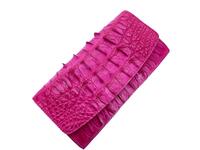 Crocodile skin long trifold wallet, this is another one model of very popular wallet for women. Those of you who prefer big and roomy wallets will love this wallet. For manufacturing of this wallet, we used high quality dressing tail part of genuine Siamese crocodile skin. Skin soft and elastic. Let’s take a look inside of wallet. Two banknotes compartments, one flat zip pocket located in far banknote pocket, two flat pockets located behind flat zip pocket. Eleven card slots, one ID slot with transparent window and extra two flat pockets located under card slot row. One fold of this wallet closing on strap with button, another fold of this wallet closing on the magnet button. Textile and soft calfskin used as a lining material.