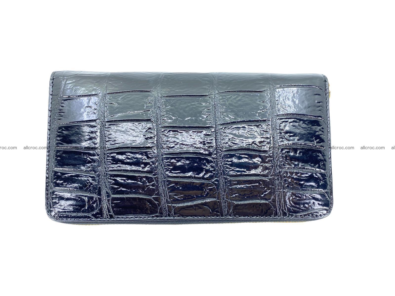 Long wallet with zip made from genuine crocodile leather, high-quality crocodile leather. For manufacturing of this wallet used most expensive and beautiful belly part of Siamese crocodile leather. Wallet made from one whole piece of crocodile skin that increase value of this wallet. The leather is soft, elastic and pleasant to the touch. Both women and men can use wallets of this model. Soft calfskin and textile used as a lining material.