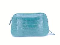 Crocodile leather clutch made from genuine Siamese crocodile skin belly part. This model can be called as small handbag, purse or clutch and can be used booth men and women. Crocodile leather clutch made from genuine Siamese crocodile skin belly part. This model can be called as small handbag, purse or clutch and can be used both men and women. This model has a handle strap and shoulder belt made from crocodile skin. For manufacturing of exactly this small handbag used most expensive skin, beautiful belly part of crocodile hide. On both sides we can see unique and unrepeatable pattern of belly of crocodile leather. Let’s take a look inside of bag and on it functional.