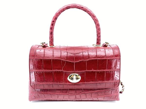 For manufacturing of this handbag used genuine Siamese crocodile skin. Model of this crocodile handbag will be loved by those of women who prefer small size handbags. For producing of this crocodile handbag used high-end manufactured skin of Siamese crocodile. All parts of handbag such as main and back surfaces bottom part, handles are made from whole piece of belly part of Siamese crocodile. The belly part of Siamese crocodile skin is most rare and expensive skin in the whole world. Inside of handbag made in one volume. On inner side of handbag located flat pocket with zipper. Lining material is soft calfskin.