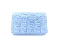 For manufacturing of this wallet used genuine crocodile skin hornback part of hide of Siamese crocodile High-end manufactured crocodile skin. Crocodile skin used for these goods soft and flexible. On the front side of wallet we can clearly see unique and not repeatable texture of horn-back hide of Siamese crocodile, what goes into the belly part of crocodile skin. For manufacturing this kind of wallets used one whole piece of crocodile skin, horn back becomes to the belly part. Using whole piece of crocodile skin makes price for this wallet a bit higher. For more budget wallets of this model used crocodile skin with next textures;