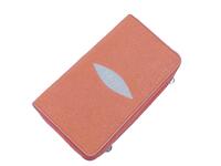 Genuine stingray skin wallet-clutch with 2 zips. For manufacturing of wallets of this model used genuine skin of stingray. High-end leather manufactured. Wallets clutch of this model will be loved to those mans and ladies who prefer wallets of a medium size with good capacity. Wallets of this model are made from one whole piece of genuine skin of stingray. On face surface we can see one white eye; this is typical ornamentation for items what made from stingray skin. This wallet clutch contained from 2 independent compartments.