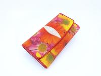 Genuine stingray skin long wallet - trifold for lady. For manufacturing of wallets of this model used genuine skin of stingray. High-end leather manufactured. Wallets of this model will be liked to those ladies who prefer wallets of average size with good capacity. On main surface of wallet we see one white eye typical for stingray goods ornamentation. On back surface of wallet on the top located one convenient flat wide pocket.