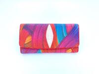 Genuine stingray skin long wallet - trifold for lady. For manufacturing of wallets of this model used genuine skin of stingray. High-end leather manufactured. Wallets of this model will be liked to those ladies who prefer wallets of average size with good capacity. On main surface of wallet we see one white eye typical for stingray goods ornamentation. On back surface of wallet on the top located one convenient flat wide pocket.