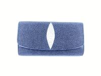 Genuine stingray skin long wallet - trifold for lady. For manufacturing of wallets of this model used genuine skin of stingray. High-end leather manufactured. Wallets of this model will be liked to those ladies who prefer wallets of average size with good capacity. On main surface of wallet we see one white eye typical for stingray goods ornamentation. On back surface of wallet on the top located one convenient flat wide pocket.