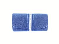 Genuine stingray skin long wallet - trifold for lady. For manufacturing of wallets of this model used genuine skin of stingray. High-end leather manufactured. Wallets of this model will be liked to those ladies who prefer wallets of average size with good capacity. On main surface of wallet we see one white eye typical for stingray goods ornamentation. On back surface of wallet on the top located one convenient flat wide pocket.