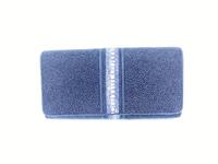 Genuine stingray skin long wallet - trifold for lady. For manufacturing of wallets of this model used genuine skin of stingray. High-end leather manufactured. Wallets of this model will be liked to those ladies who prefer wallets of average size with good capacity. On main surface of wallet we see one white eye typical for stingray goods ornamentation. On back surface of wallet on the top located one convenient flat wide pocket.