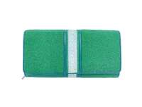Genuine stingray skin long wallet - trifold for lady. For manufacturing of wallets of this model used genuine skin of stingray. High-end leather manufactured. Wallets of this model will be liked to those ladies who prefer wallets of average size with good capacity. On main surface of wallet we see one white eye typical for stingray goods ornamentation. On back surface of wallet on the top located one convenient flat wide pocket.