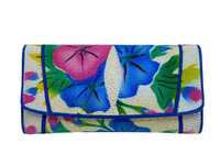 Genuine stingray leather wallet with colored flowers print