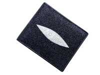 For manufacturing of this folded wallet used genuine stingray leather. Wallet decorated by white-eye, wallet consist fro, banknotes compartments, card slots and coin pocket.