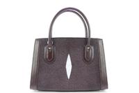 For manufacturing of this handbags used high-end manufactured genuine stingray leather. Handbag of this model will appeal to those women who prefer handbags of average size with good capacity. On main and back surfaces of this handbag we can clearly see white eyes this is typical ornamentation of goods from stingray skin. Handbag inside made from one volume. On inner sides of handbag located pockets 2 pockets with zipper and 2 pockets without zipper. For greater flexibility and elasticity sides parts are made from soft calfskin. lining material is soft cloth.