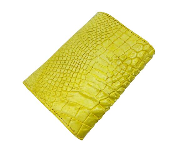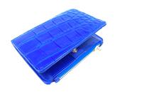 This is another one compact vertical wallet for men and women. This is quite popular model of bi-fold wallet. Wallet of this model has a side pocket with zip, which can use as a coin compartment or pocket for other small items. For manufacturing of this product used genuine Siamese crocodile skin. Skin soft and elastic. On main surface of wallet located side part of crocodile-hide, which becomes to the crocodile knee part on the backside of wallet. Both textures side part and knee part has unique and expressive texture of natural crocodile skin. Wallet consist of two banknote compartments, four card slots, two pockets with access from middle part of wallet and side pockets with zip what can use as a coin pocket or can use for other small items. Wallet closing on the button, Calfskin and textile used as a lining material.