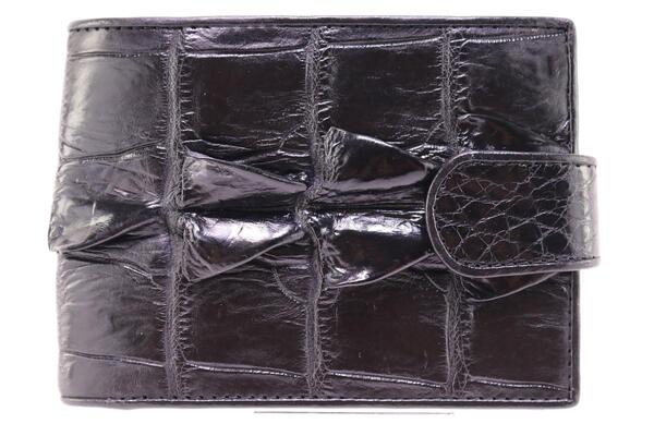 Genuine Siamese crocodile skin wallet, model US, with natural paw of crocodile. For manufacturing wallets of this model used natural crocodile skin, knee part of hide of Siamese. As a main decoration of wallet on face side of wallet sewn natural paw of Siamese crocodile with claws.