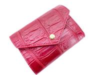 Gorgeous Crocodile skin wallet for women. Trifold wallet medium size with zip pocket on the side of wallet for coins. For manufacturing of this wallet were use belly part of Siamese crocodile skin. Crocodile skin of high quality, soft and elastic. Wallet closing on the metal button. Wallet of average size with high functional, wallet consist from banknotes compartment, six card slots, two side pockets from middle part of wallet and very convenient compartment with zip which located on the side of wallet. Soft calfskin and textile used as a lining material.