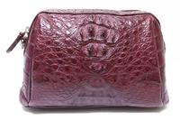 Genuine crocodile leather ladies handbag. For manufacturing of this crocodile handbag used genuine crocodile leather, skin of crocodile cayman. On the front of bag is located textured nape part of hide of Cayman. On the backside of handbag we can clearly see unique texture of hornback of the hide of cayman. The side surfaces of bag also made from crocodile leather, mostly from textured tail part of hide of crocodile. On the top of bag, sewed metal zip. On the side surfaces are located steel rings for fastening the shoulder strap. Interior of this handbag made from genuine cow skin painted in the color of the bag. Inside of bag are two pockets, one of them with zip. Adjustable length shoulder strap, with crocodile skin finish, under the color of bag at set.