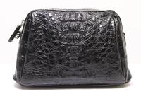 Genuine crocodile leather ladies handbag. For manufacturing of this crocodile handbag used genuine crocodile leather, skin of crocodile cayman. On the front of bag is located textured nape part of hide of Cayman. On the backside of handbag we can clearly see unique texture of hornback of the hide of cayman. The side surfaces of bag also made from crocodile leather, mostly from textured tail part of hide of crocodile. On the top of bag, sewed metal zip. On the side surfaces are located steel rings for fastening the shoulder strap. Interior of this handbag made from genuine cow skin painted in the color of the bag. Inside of bag are two pockets, one of them with zip. Adjustable length shoulder strap, with crocodile skin finish, under the color of bag at set.