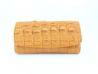Crocodile leather long wallet for women trifold big size. This is very popular model of women’s. Almost all commonly used things that women carrying in the wallet can be placed into this wallet. For manufacturing of this wallet used genuine Siamese crocodile skin, used skin soft and supple, skin high level quality. For manufacturing exactly this wallet used great looking and valuable hornback part of Siamese crocodile hide. Hornback part of Siamese crocodile skin impossible to fake. This wallet made from one whole piece of crocodile skin. This fact makes this wallet very valuable and increasing price for this wallet.