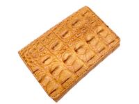 Handcrafted crocodile skin trifold wallet for women. Wallet equipped compartments for coins. For manufacturing of these wallets used genuine Siamese crocodile horn-back part becomes to the belly part. Wallets of this wallet made from one whole piece of crocodile skin and this increasing valuable of wallet. For manufacturing of this wallet used soft and elastic croc skin, what show on high quality of tanning of crocodile leather. Even with average size of these wallets functional of this wallet very high. Let’s take a look inside of wallet, wallet consist from two banknotes compartments, eight slots for cards, one ID pocket, compartment for coins or another small items and six sides pockets.