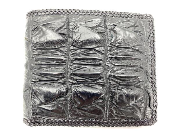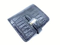 Crocodile skin women's wallet with coins compartment. For manufacturing of this wallet used most expensive part, belly of Siamese crocodile skin. Wallet made from one whole piece of crocodile skin. On main surface of wallet located staple for strap. Wallet consist from banknotes compartment, cards slots and small compartment with zip around which can be used as coins pocket. Calfskin and textile used as a lining material.