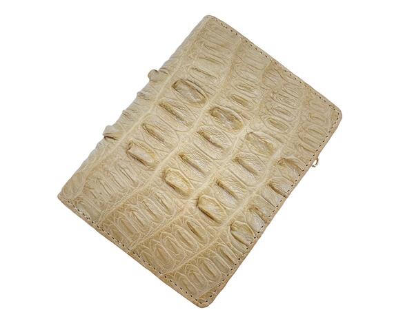 Women’s wallet trifold medium size made from crocodile leather for manufacturing of wallets of this model used genuine Siamese crocodile skin. Used crocodile skin is soft and supple. This wallet made from crocodile skin, but on back side of wallet skin is gluing, skin bonding performed professionally and almost imperceptibly. The fact that the wallet is made with a seam on the back side makes its price is more affordable. As a main decoration on front surface of wallet we can see hornback texture and unique patter of Siamese crocodile skin, on back side texture and pattern changing into the side part of hide and crocodile knee. Wallets of this model have a middle size and good capacity, this characteristic makes this wallet one of most popular models.