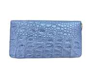 Long wallet with zip made from genuine Siamese crocodile leather.